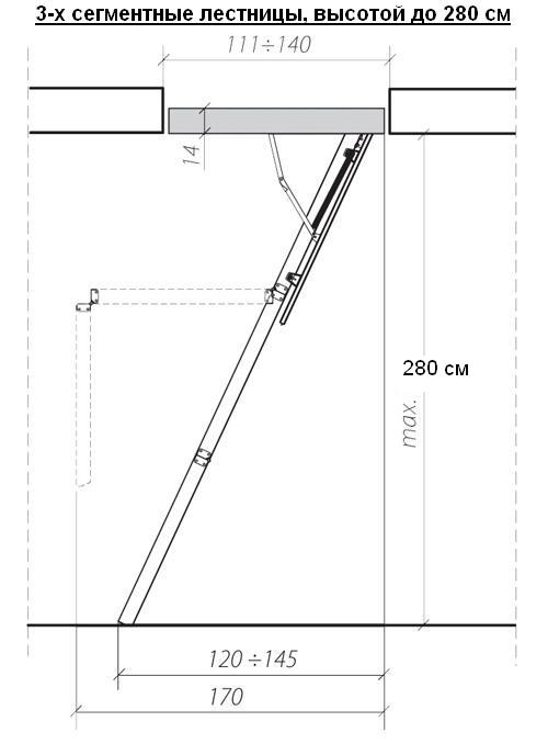 Чердачные лестницы Комфорт состоит из 3-х или 4-х секций. Наличие утеплителя пенопласта в крышке люка (толщина 36 мм) и контура уплотнения по е, периметру, позволяет избежать потери тепла. Крышка люка облицована с двух сторон ДВП белого цвета, что делает е, практически незаметной при установке в светлом или белом потолке.