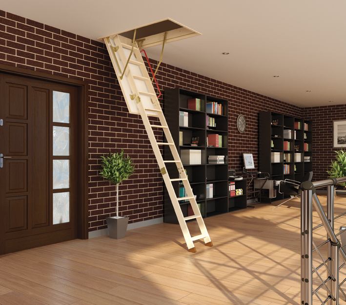 Чердачные складные лестницы с люком купить. Tradition Komfort Termo/ производятся из дерева сосновых пород.