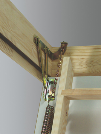 Безопасность. Прочность конструкции и соединений, чердачные лестницы выдерживают нагрузку 160 кг. Ступени имеют противоскользящие выемки. Отрегулированные пружины позволяют плавно опускать и поднимать крышку люка, а с помощью специального стержня и замка, встроенного в люк, крышка плотно закрывается, и обеспечивает защиту от несанкционированного проникновения на чердак.