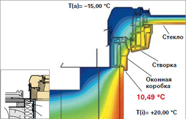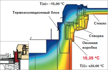 Ход изотермы мансардного окна с термоизоляционным блоком WD и без него
