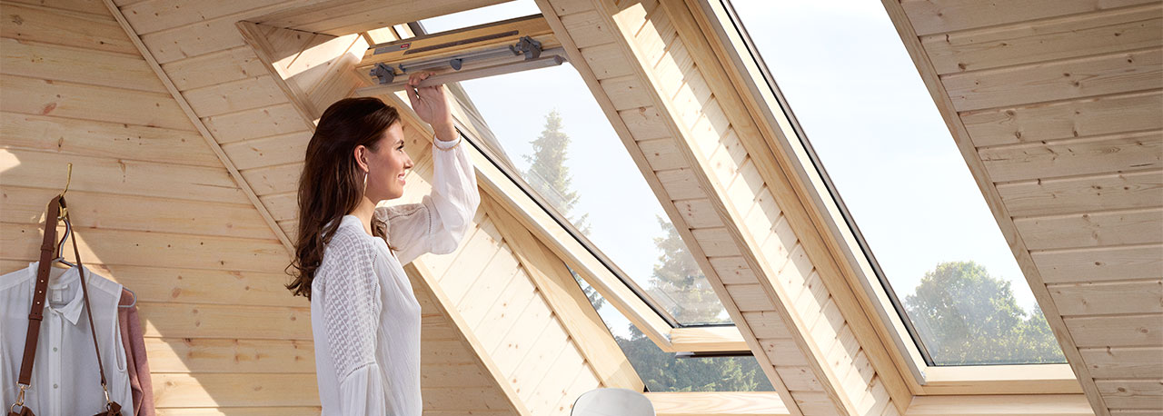 Мансардные окна VELUX купить с открыванием по центральной оси из клееной древесины северной сосны с двойным лаковым покрытием BASEfinishTM. Внешнее стело закаленное. Модель оснащена вентиляционным устройством, расположенным в верхней части окна (воздухообмен до 24 м3/час при 10 Па).