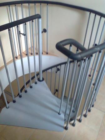 Винтовые лестницы металлические Civik. Винтовые лестницы и ступени изготовлены из прессованной и пластифицированной стали. Сталь винтовой лестницы может быть черного, белого и серого цвета. Полиуритановый поручень лестницы черного цвета, как и покрывающие ступеньки - накладки, сделанные из износостойкого антискользящего материала.