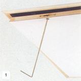 - Крышка чердачного люка, толщиной 36 мм, являющаяся частью лестницы, представляет собой раму из сосны, облицованную с двух сторон ДВП и заполненную утеплителем (пенопластом). Внешняя сторона крышки гладкая, находящейся в ней штыревой замок позволяет закрывать крышку и легко открывать её снизу.