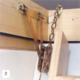 - Оригинальная конструкция изготовлена таким образом, чтобы ее элементы не затрудняли подъем на чердак. Стальные петли-шарниры гарантируют устойчивость конструкции лестницы.