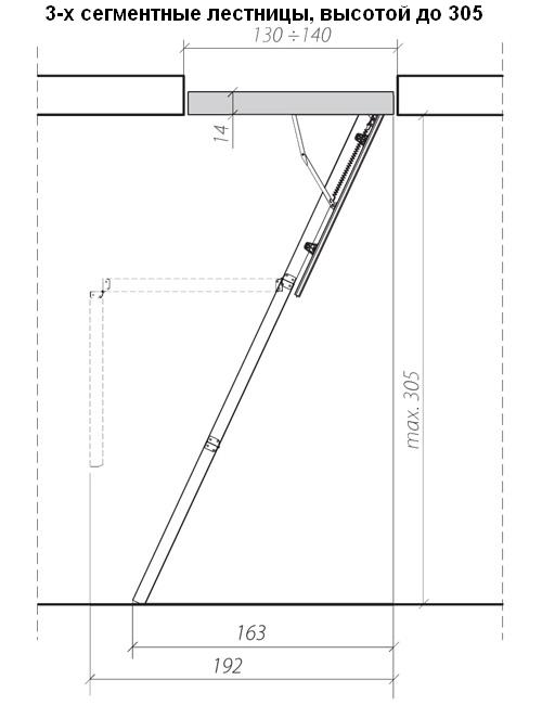 Чердачные лестницы Комфорт состоит из 3-х или 4-х секций. Наличие утеплителя пенопласта в крышке люка (толщина 36 мм) и контура уплотнения по е, периметру, позволяет избежать потери тепла. Крышка люка облицована с двух сторон ДВП белого цвета, что делает е, практически незаметной при установке в светлом или белом потолке.