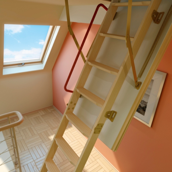 Чердачные складные лестницы с люком купить. Tradition Komfort Termo/ производятся из дерева сосновых пород.