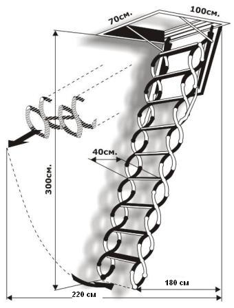*Возможно увеличение высоты лестницы с 300 см до 325-450 см (высоты помещения) с помощью установки дополнительных секций.