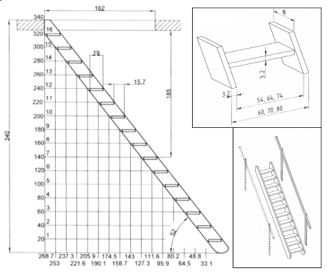 Относится к классу экономичных лестниц. Структура элементов наборная — отдельные бруски соединены между собой в шиповое соединение и проклеены. Лестница занимает мало места и имеет угол наклона 52°. Ступени лестницы прямые. Лестница не покрыта лаком и поставляется в разобранном виде, упакованной в картонную коробку. Прилагается вс, необходимое для сборки (саморезы, креп,жные уголки, ключ и инструкция). В Россию поставляют лестницы для высоты потолков до 300 см., и шириной 70 см.