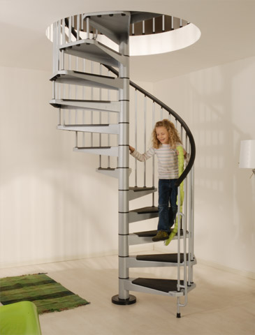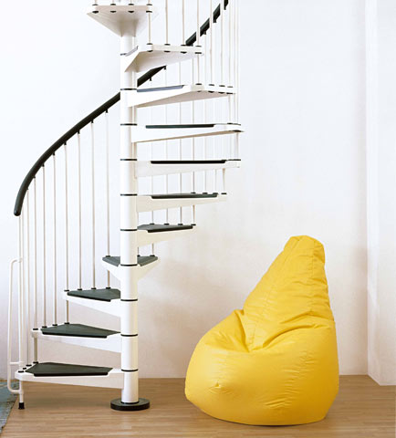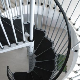 Винтовые лестницы металлические Civik. Винтовые лестницы и ступени изготовлены из прессованной и пластифицированной стали. Сталь винтовой лестницы может быть черного, белого и серого цвета. Полиуритановый поручень лестницы черного цвета, как и покрывающие ступеньки - накладки, сделанные из износостойкого антискользящего материала.