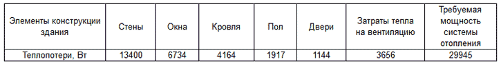 Обогреть дом при таких теплопотерях возможно при мощности системы отопления 30 кВт.