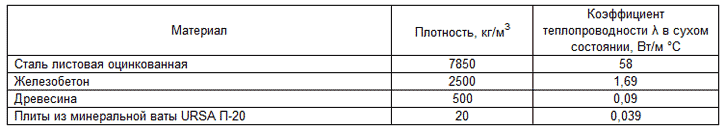 Коэффициенты теплопроводности λ различных материалов