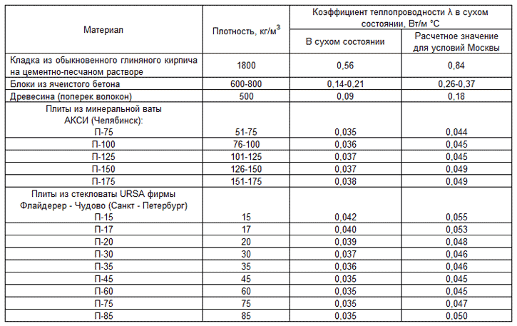 При эксплуатации домов, в результате воздействия внутренней и наружной среды на ограждающие конструкции, материалы находятся не в абсолютно сухом состоянии, а имеют несколько повышенную влажность. Это приводит к увеличению коэффициента теплопроводности материалов λ и снижению их теплоизолирующей способности. Поэтому при оценке теплозащитных характеристик конструкций необходимо использовать реальное значение коэффициента теплопроводности в условиях эксплуатации, а не в сухом состоянии.
