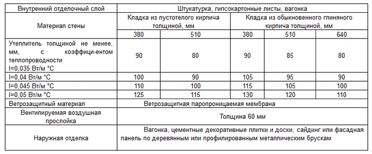 Рекомендации по выбору толщины утеплителя для условий Москвы и Подмосковья (в зависимости от материала и толщины утепляемой стены) приведены в таблицах №7 и №8.