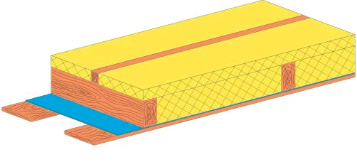 Дополнительный слой утеплителя можно расположить и под существующей теплоизоляцией. Для этого на внутренней обшивке мансарды устанавливают каркас из деревянных брусьев, между которыми 'враспор' помещают плиты теплоизоляционного материала. Высота брусков должна соответствовать толщине слоя утеплителя. Со стороны помещения утеплитель необходимо защитить пароизоляционным материалом, который крепят к деревянным брускам каркаса. Изнутри помещение отделывают вагонкой, гипсокартонными листами, фанерой и т.п.