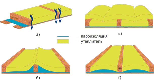 В теплоизоляционном слое не должны оставаться впадины или полости для прохода воздуха. Далее приведены самые типичные ошибки при установке теплоизоляции (см. рис. 4).