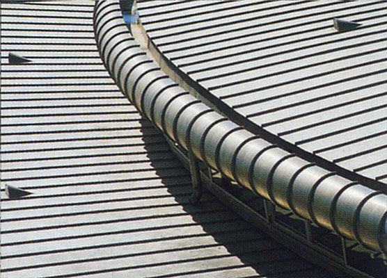 Кровли из рулонного цинк-титана включают в себя большое количество элементов, необходимых для правильной работы как самих кровель, так и всех систем, отвечающих за внешний облик здания. Среди элементов кровли основное место занимают водоотводные системы (желоба, водосточные трубы, приемные воронки и т.д.).